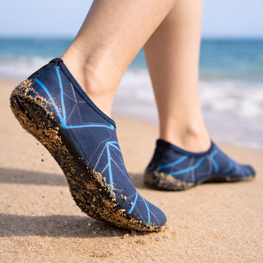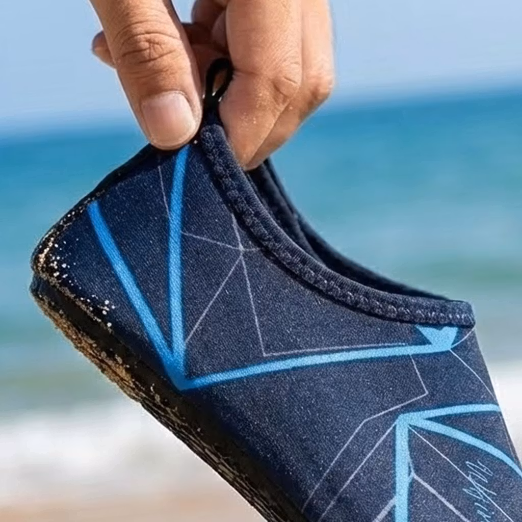 Et par badesko passer godt til lange og skønne dage på stranden. Ved at bruge et par beskyttende badesko kan du gå på stranden uden at brænde dig på det varme sand eller risikere at træde på syleskarpe muslingeskaller, knust glas eller andet affald, der desværre undertiden findes på vores strande.