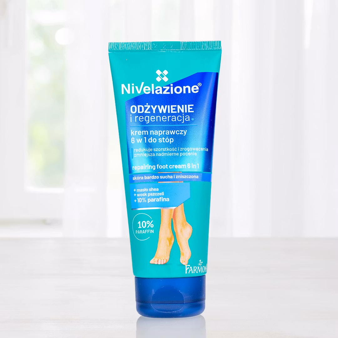 Denne creme indeholder en rig formel, der takket være de nøje udvalgte aktive ingredienser giver flere fantastiske resultater. Cremen fungerer som en daglig fugtgivende beskyttelse til fødderne, udglatter ru hud, forhindrer sprukne hæle og beskytter mod revnedannelse i epidemierne. Som prikken over I'et opfrisker cremen fødderne med en dejlig duft og arbejder i dybden for at forebygge fodsved. Den reparerende fodcreme fra Nivelazione er perfekt til dig, der ønsker sunde og smukke fødder, og den fungerer fantastisk som en god hverdagsfodcreme.