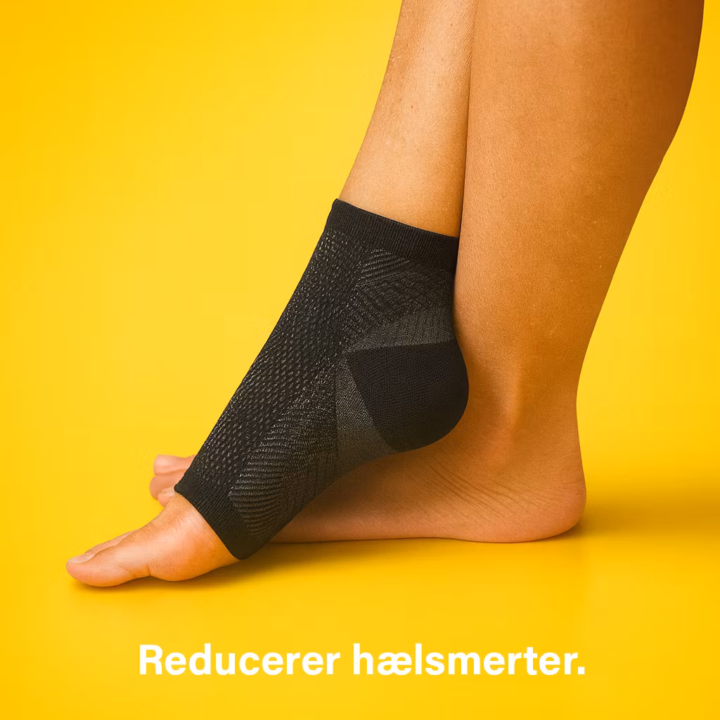 Ved at bruge et par hælsporestrømper kan du hjælpe kroppen med at fremskynde helingsprocessen under hælen. Når du bruger strømper med kompression, øges blodgennemstrømningen i dine fødder, hvilket får kroppens lægningsproces til at gå hurtigere. Derudover giver hælsporestrømperne støtte til hælene og giver et behageligt tryk mod smertende hæle. En pakke indeholder to strømper.