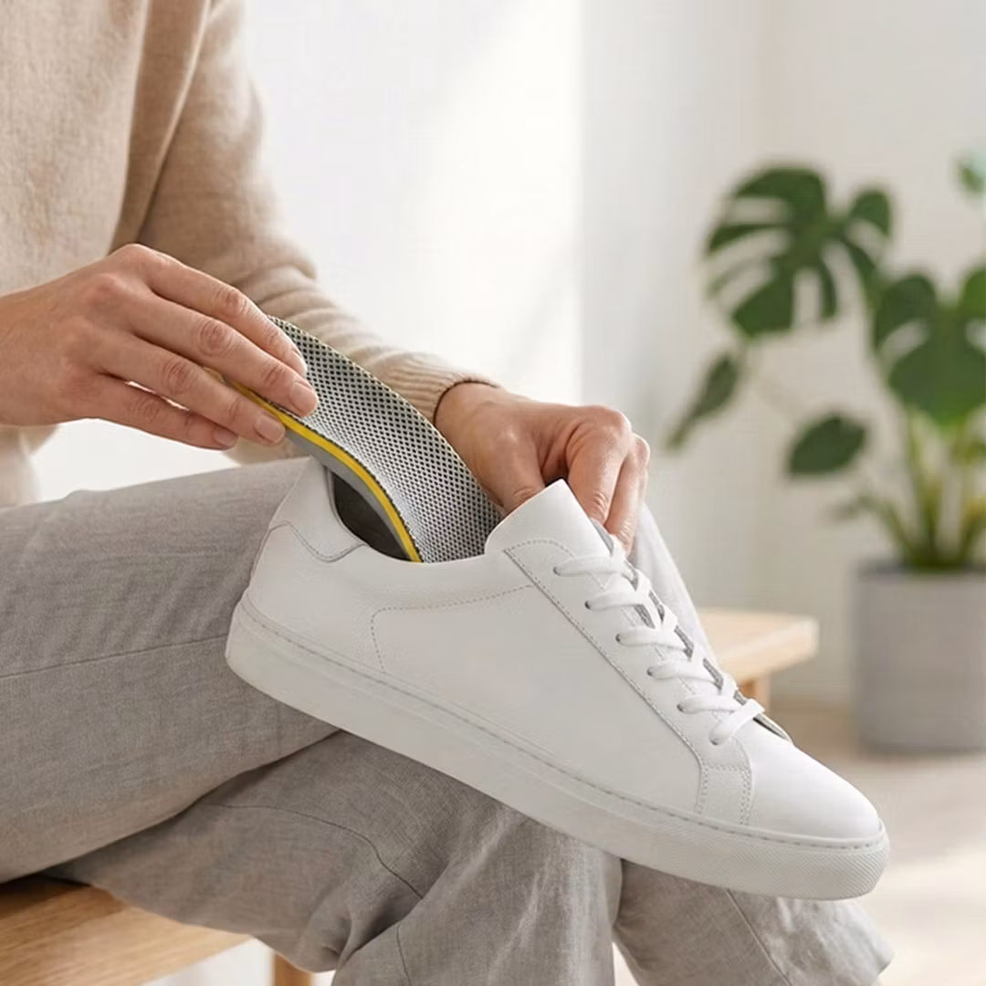 Der kan være flere grunde til, at du har brug for skoindlæg. To almindelige grunde til at bruge skoindlæg er at give dine fødder en behagelig komfort samt at lindre smerter og overanstrengelser i fødderne. Disse behagelige skoindlæg dæmper stød i hælen og giver ekstra støtte til svangen. De er meget komfortable og kan bruges i alle typer sko.