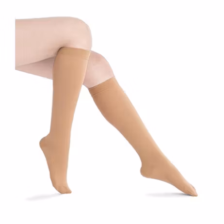 Et par støttestrømper (beige) i højeste kvalitet, der giver aflastning og støtte til trætte og hævede ben. Støttestrømperne er velegnede til dig, der belaster benene meget på arbejde eller i fritiden. De øger blodcirkulationen i benene, hvilket reducerer hævelse og træthed.