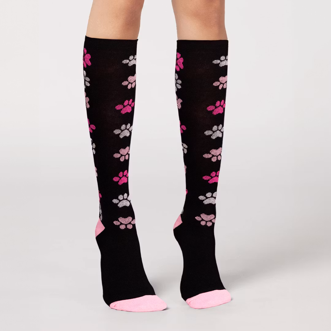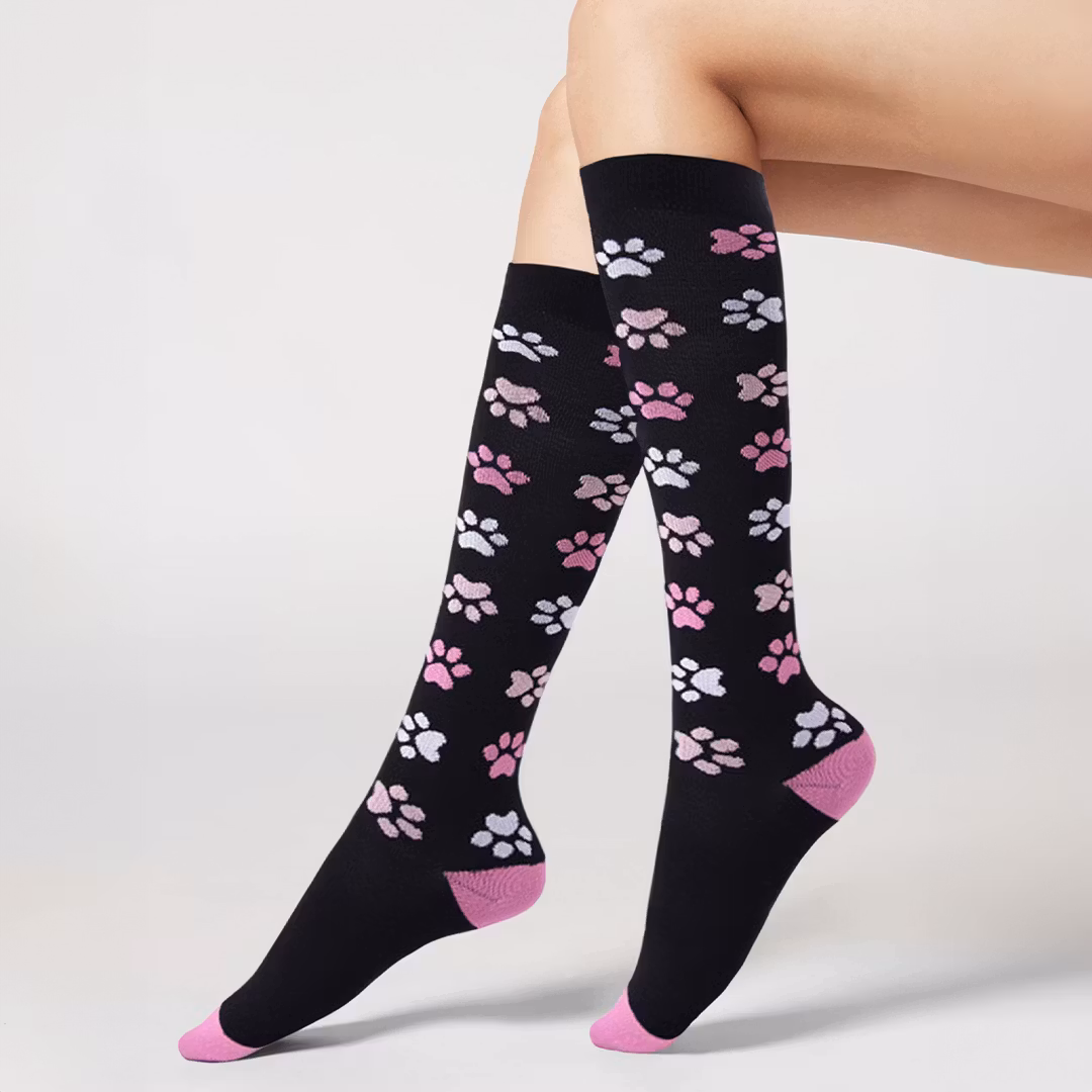 Støttestrømper med motiver af poter